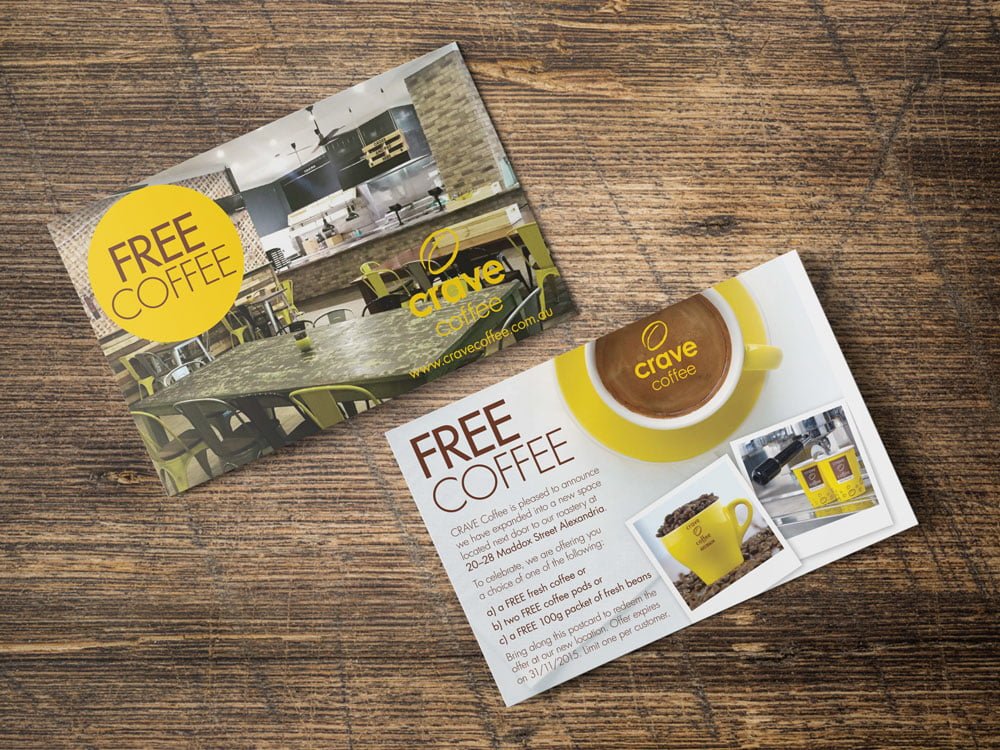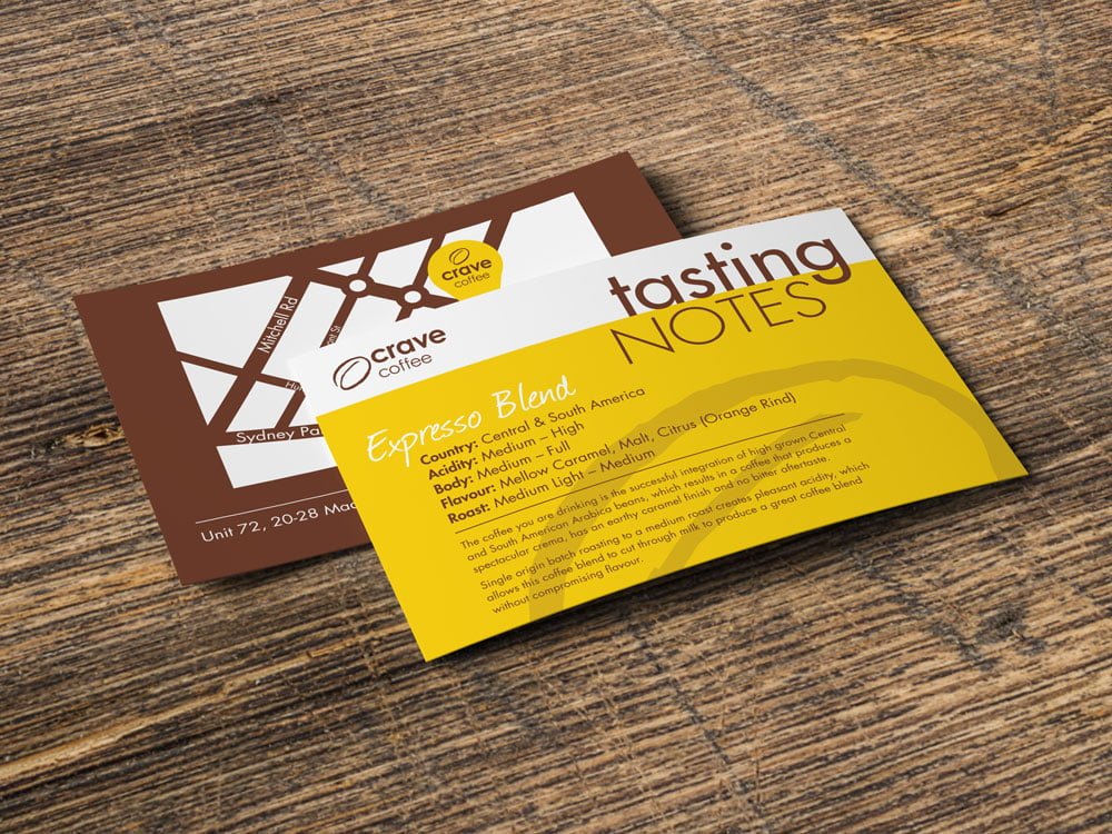 We all love coffee so when our local roasters Crave Coffee asked for a packaging re-design we were happy to help. We updated their packaging and refreshed their logo, retaining their distinctive yellow colour. We also worked on some promotional postcards and menus for their new Alexandria cafe.
