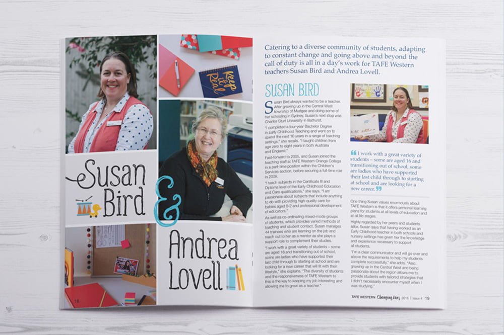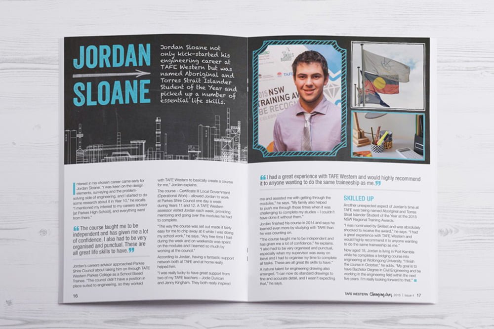 Each year TAFE Western helps to change the lives of thousands of individuals in Western NSW through education and training. To showcase some of these stories, TAFE Western asked us to create a Changing Lives magazine that was as interesting and engaging as the characters featured.