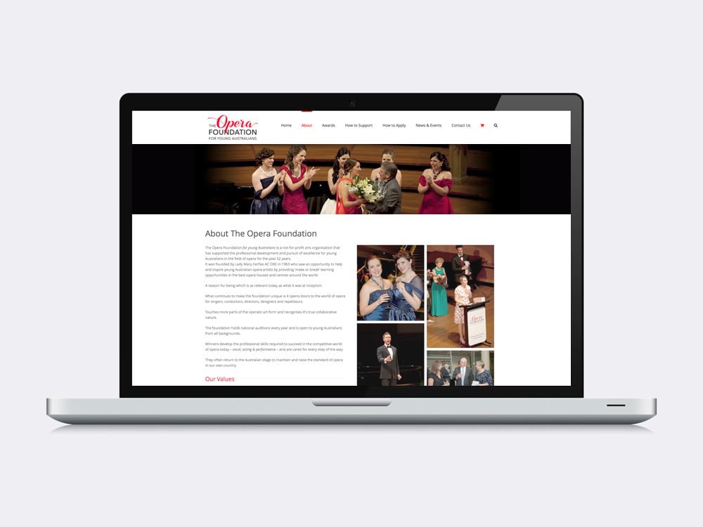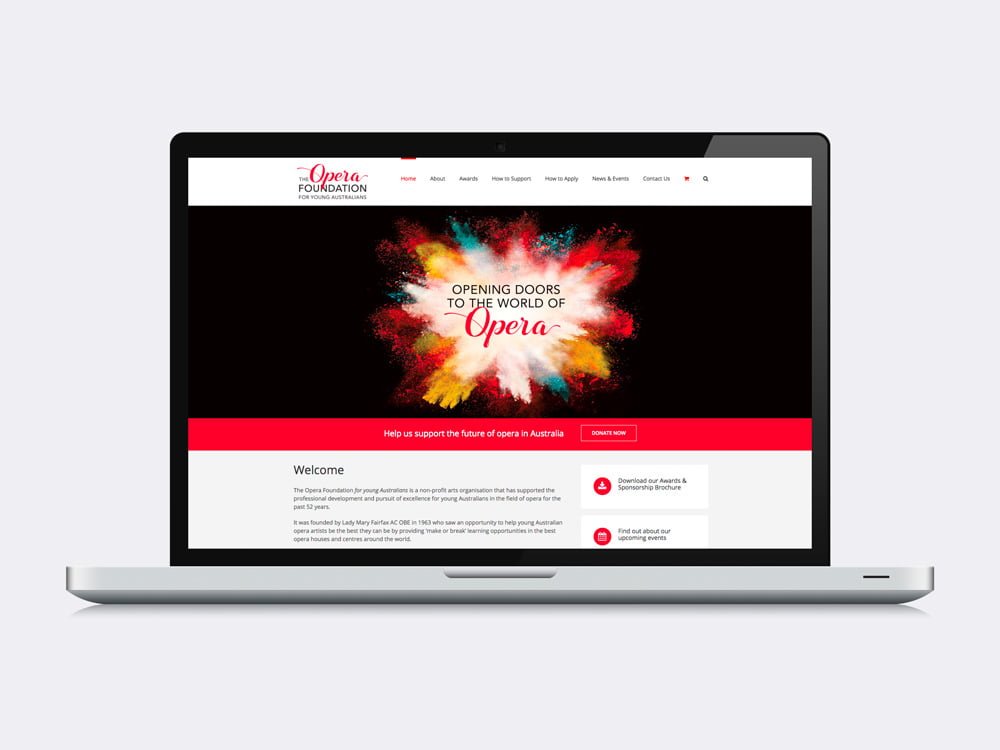 The Opera Foundation for young Australians asked us to design a new logo to reflect the core values of this established organisation (formerly known as Opera Foundation Australia). The typographic logo we created features a rhythmic font for ‘Opera’ that is representative of a ribbon to reflect awards. This was paired with a modern sans-serif font to give the logo stability and gravitas. The dramatic red is inline with their previous logo.