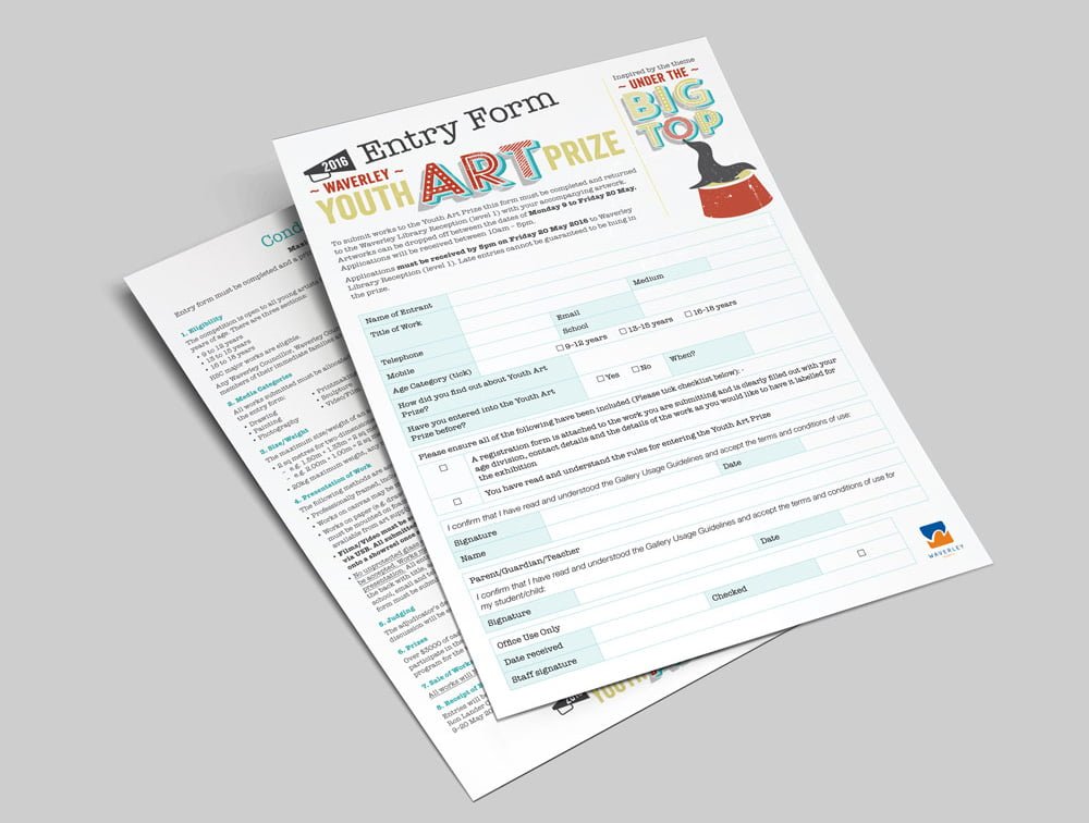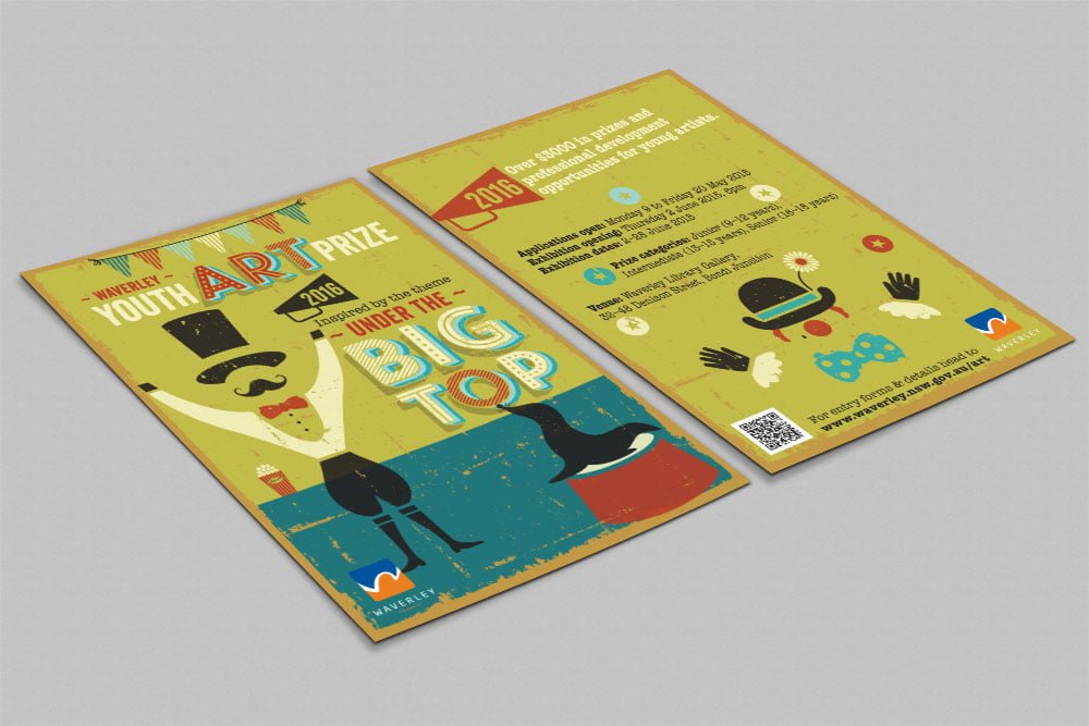 Each year Waverley council run a youth art prize based on a theme. This year the theme was ‘Under the Big Top’. We created a striking range of promotional material in a vintage circus style to promote the competition and encourage entries.
